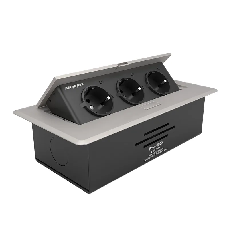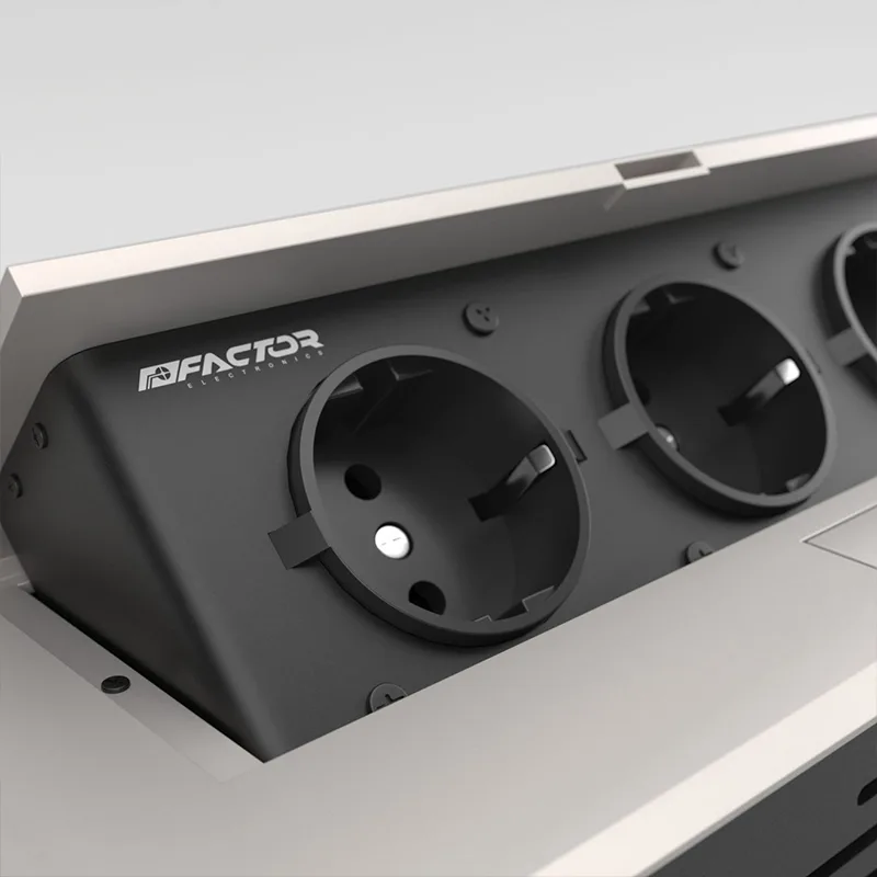 دربی که بر روی پریز توکار کابینت مدل 3 پریز قرار گرفته باعث محافظت از پریز ها و شلوغ نشدن سطح روی میز ها می شود. این پریز توکار بر روی انواع میز کنفرانس، میزهای ادارای، آشپزخانه ها، هتل ها و … قابل نصب است.