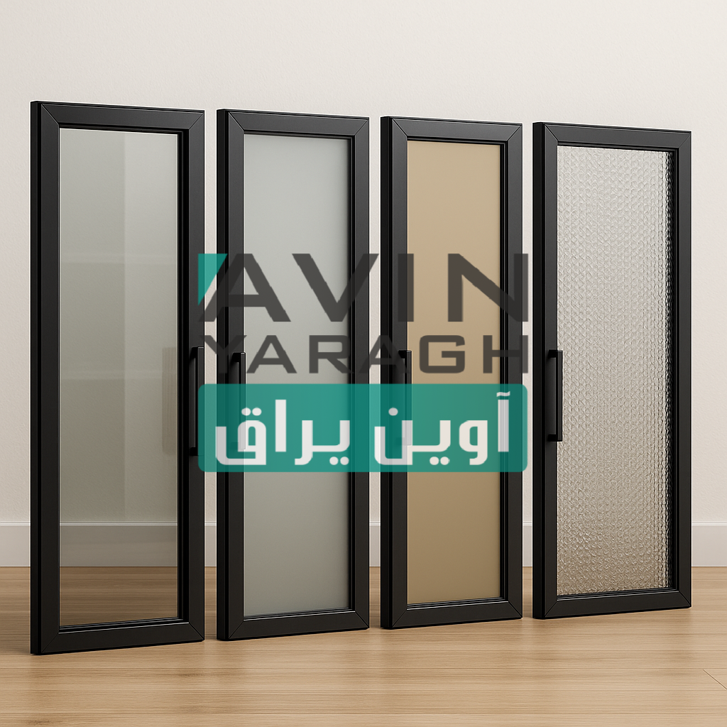 - شیشه مات (سندبلاست): حفظ حریم خصوصی با عبور ملایم نور.