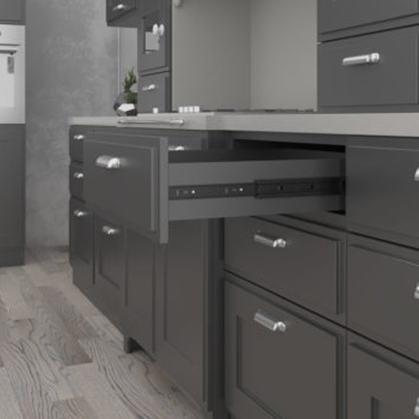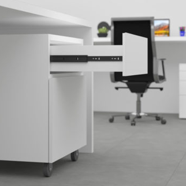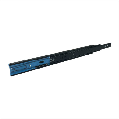 ساختار سه تیکه: این ریل از سه بخش اصلی (ریل داخلی، میانی، و خارجی) تشکیل شده که با استفاده از ساچمههای فولادی ضدزنگ حرکت کشو را نرم و بدون اصطکاک میکنند. این طراحی باعث میشود کشو به صورت تمامباز (Full Extension) باز شود و دسترسی کامل به فضای داخلی را فراهم کند.