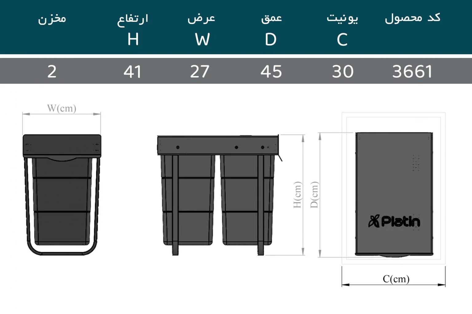 سطل زباله دو مخزن پلاتین یکی از با کیفیت ترین سطل های کابینتی به شمار می رود.از مزیت های این سطل میتوان به داشتن دو مخزن ابعاد خوب که مناسب برای نصب در هر کابینتی اشاره کرد.